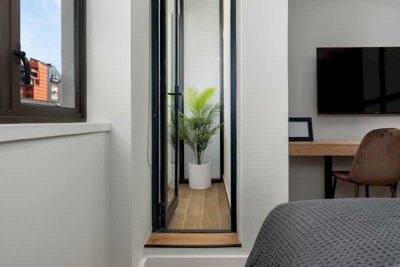 A modern studio apartment set within the newly renovated Carrington building in Cape Town’s CBD. Ideal for solo travellers or couples, this thoughtfully designed space offers contemporary comfort, a dedicated workstation, and immediate access to the city’s leading cultural, dining, and nightlife destinations.