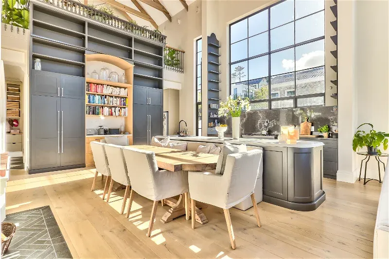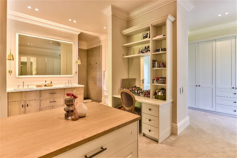 The open plan, classic-contemporary kitchen is bathed in natural light and features all the expected mod cons. A second, smaller kitchen with a bar area is ideal for guests wanting to “do it themselves” or opt to have a private chef for an evening of food theatre.
