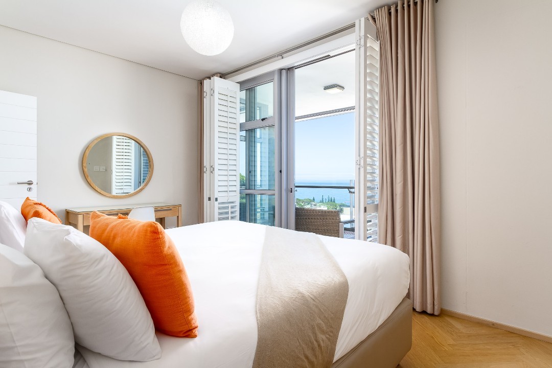 The Crystal Apartment in Camps Bay offers a spacious 3 bedroom apartment that is sure to impress. As you enter the apartment, you are greeted by an open plan living and dining area with natural light pouring in from the floor-to-ceiling windows. The spacious kitchen is fully equipped with all the necessary appliances and holiday needs. Each bedroom boasts a comfortable king-sized bed and beautiful views of either the mountain or the ocean.