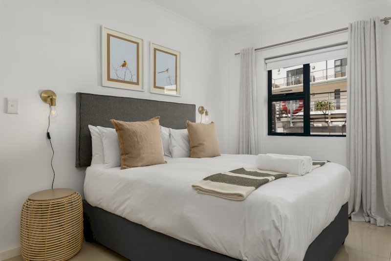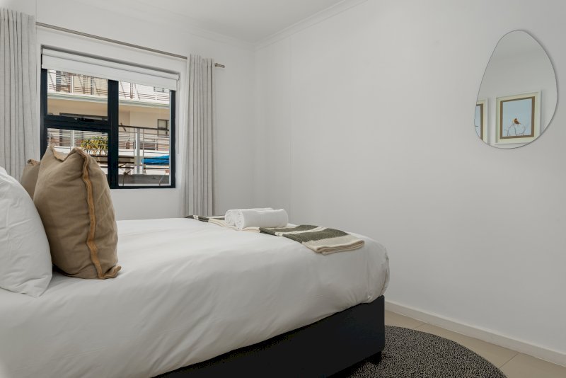 This apartment offers security and comfort, featuring a cozy Queen-sized bed and a bathroom with both a walk-in shower and a relaxing bath. The open-plan layout seamlessly connects the modern kitchen to the spacious living area, ideal for unwinding and entertainment. The kitchen is fully equipped with modern appliances, including a washing machine and dishwasher. Stay connected and entertained with a Smart TV, including Netflix access, and high-speed WiFi. Plus, worry-free parking is provided with a secure parking bay, ensuring you can explore all that Big Bay has to offer during your time .