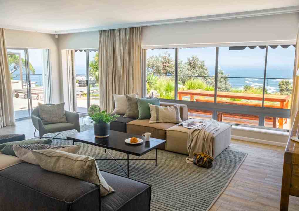 Lap up spectacular Atlantic Ocean and mountain views from this gorgeously appointed and super spacious 6-bedroom villa in Camps Bay. Neutral seaside tones evoke a calming, restful and luxurious feel – ideal for large families or groups looking for exclusivity and privacy in one of the most sought-after destinations in the world. Experience the cool coastal vibe of Camps Bay beaches and promenade, with restaurants, bars, and clubs ready to impress.