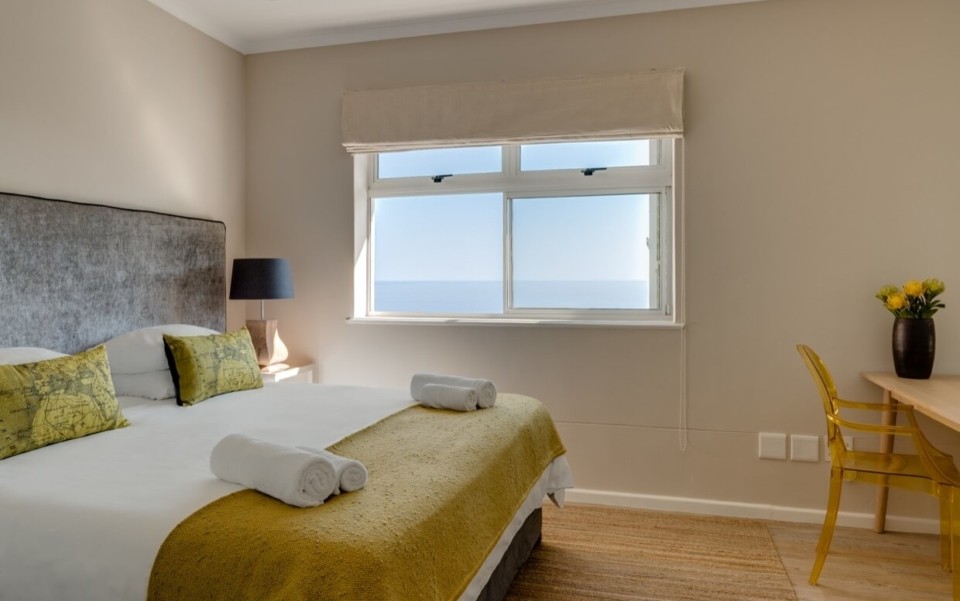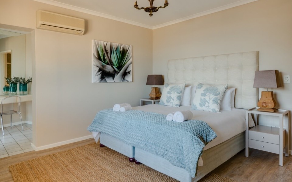 King size bed (can be separated into twins), sea views, airconditioner/heater, en-suite bathroom with walk in shower, double basis, digital safe.