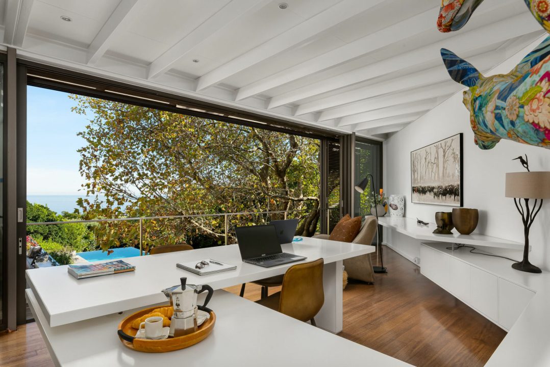 Celebrity-status luxury living unfolds here, at the iconic Villa Le Thallo. This villa oozes boldness, strength and yet sophisticated elegance. Contrasting decor, textures and colour embody a subtle African earthy feel, while contemporary art pieces captivate. Surrounded by coastal greenery, you’re gently wrapped in sublime privacy: guarded by Lions Head, and the sparkling Atlantic ocean glittering in the background. Splash out in the enormous outdoor rim flow pool, laze in the sun loungers or fire up the pizza oven for some epic outdoor entertaining under the giant oak tree. Otherwise, step indoors to escape to one of the plush bedrooms, or open plan living area with floor-to-ceiling glass doors serving superlative views. This is one for the books. Look no further.