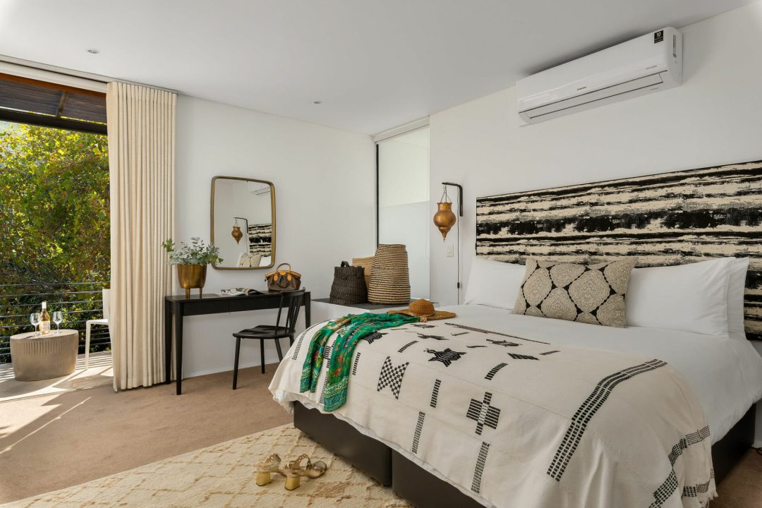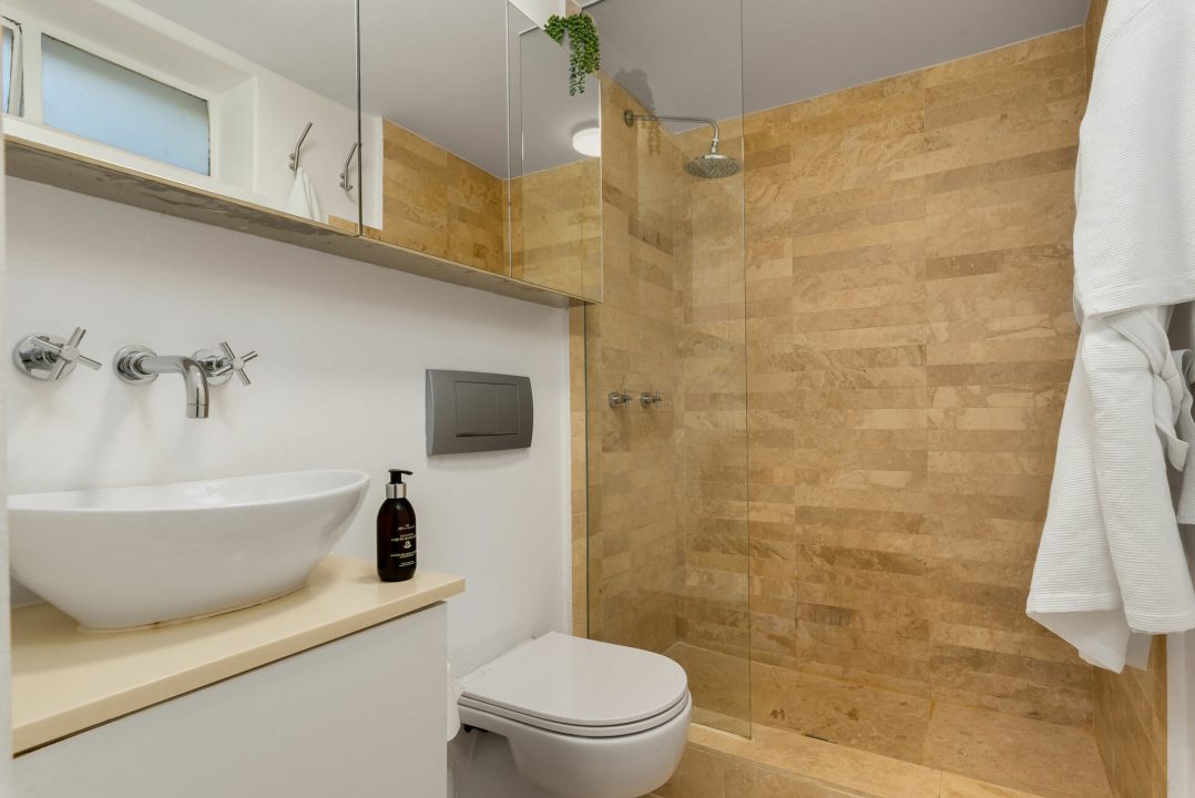 King size bed (can be separated into twins), sea view and mountain views, en-suite bathroom with shower and toilet across the passage, aircon/heating