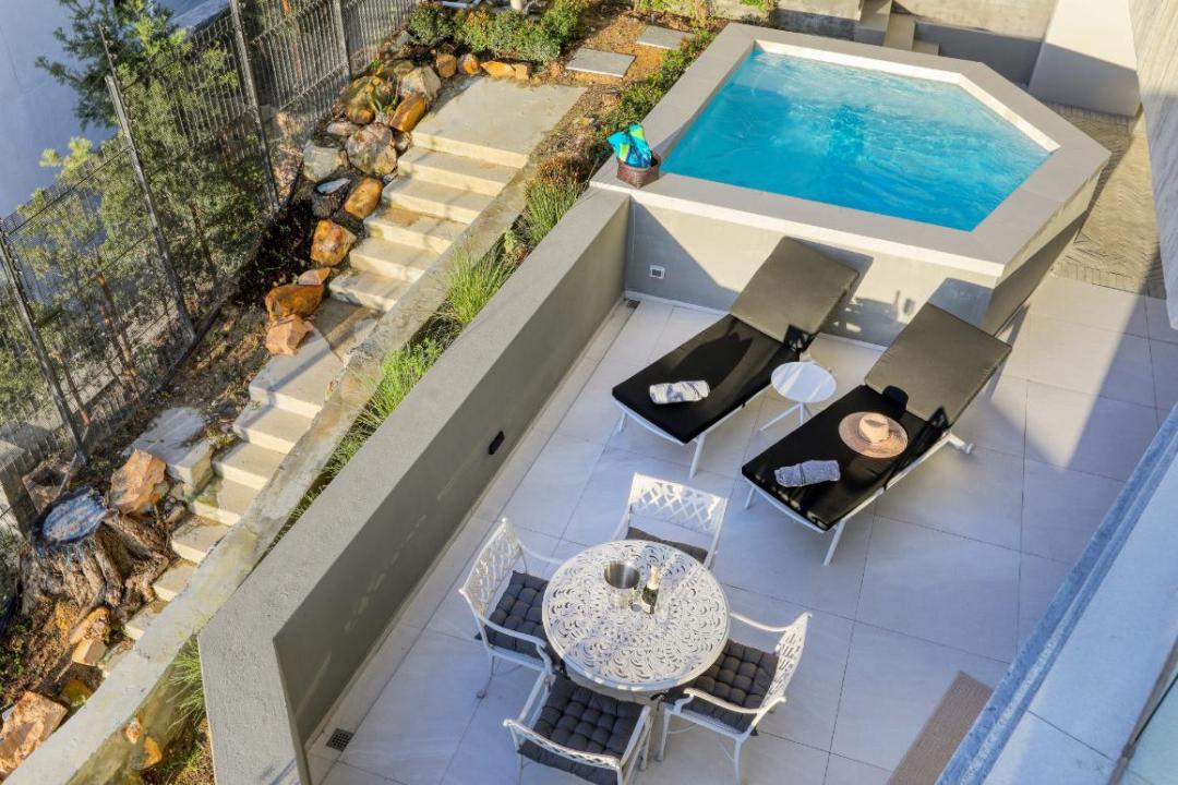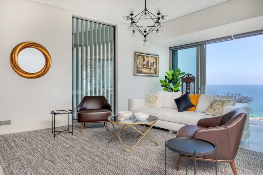 Upon entry via a short staircase, you’re welcomed by a modern open-plan kitchen that flows into a sophisticated living space. The expansive lounge opens onto a beautiful sea-facing balcony, complete with a private splash pool, gas BBQ, and a relaxed entertainment area.