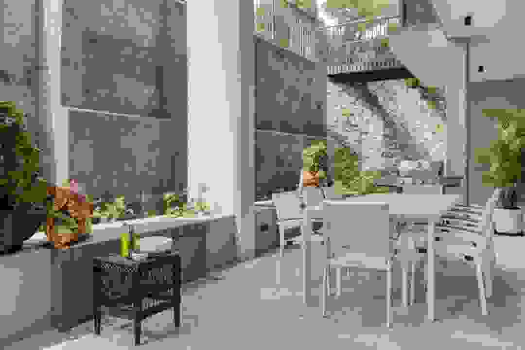 Vista Maris boasts two elegant bedrooms in the main house, each furnished with a queen-size bed and featuring its own en-suite bathroom, providing both comfort and privacy. A third studio bedroom is located just off the scenic garden path and has a small kitchenette, double bed and en-suite bathroom.