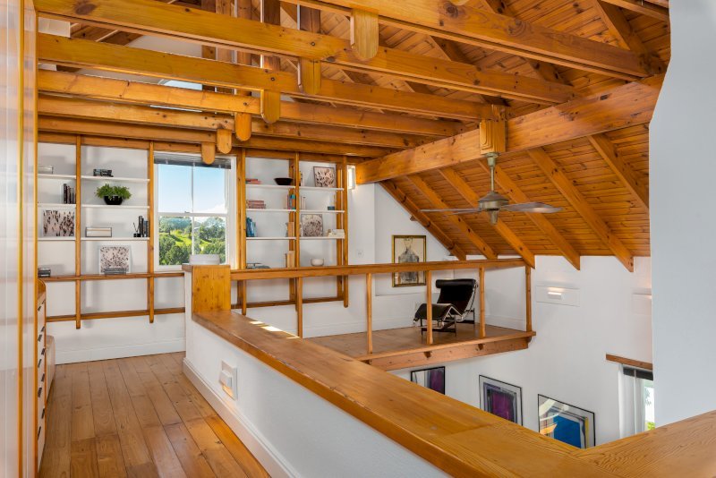 Please note that the larger of the upstairs bedrooms is a loft-like space with open rafters – it’s perfectly private but the ceiling is open to the beautiful timber rafters.