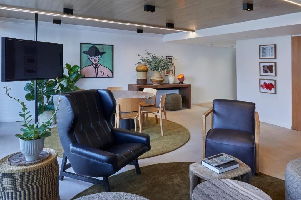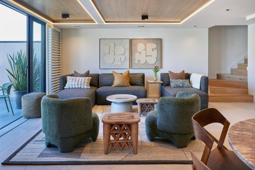 Open-plan living and dining areas are designed to maximise light and views, with plush seating, curated décor, and seamless indoor flow. Floor-to-ceiling glass invites the outdoors in, while smart entertainment systems create a space equally suited to entertaining or unwinding after a day exploring the city. The expansive layout enhances the feeling of elevated urban living.